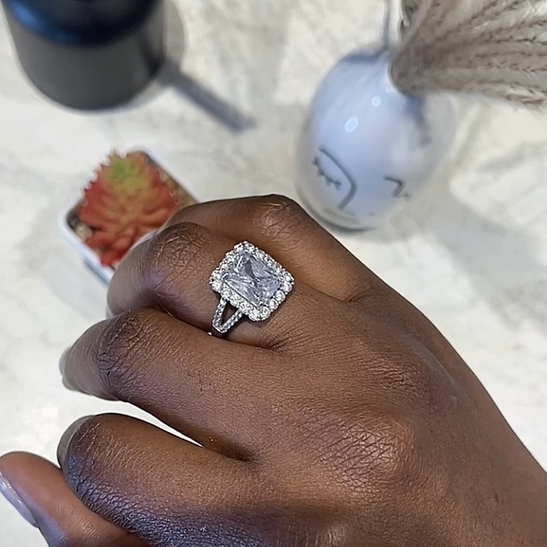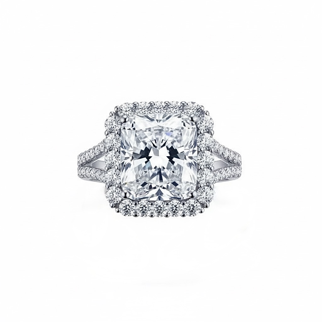 2.5CT Radiant Cut Split Prong Engagement Ring with 2mm Halo