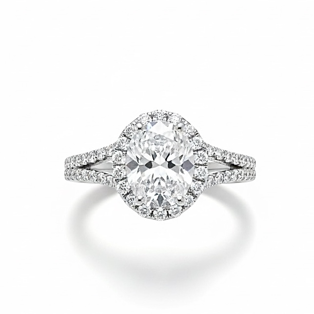 2CT Oval Split Shank Engagement Ring with Traditional Halo