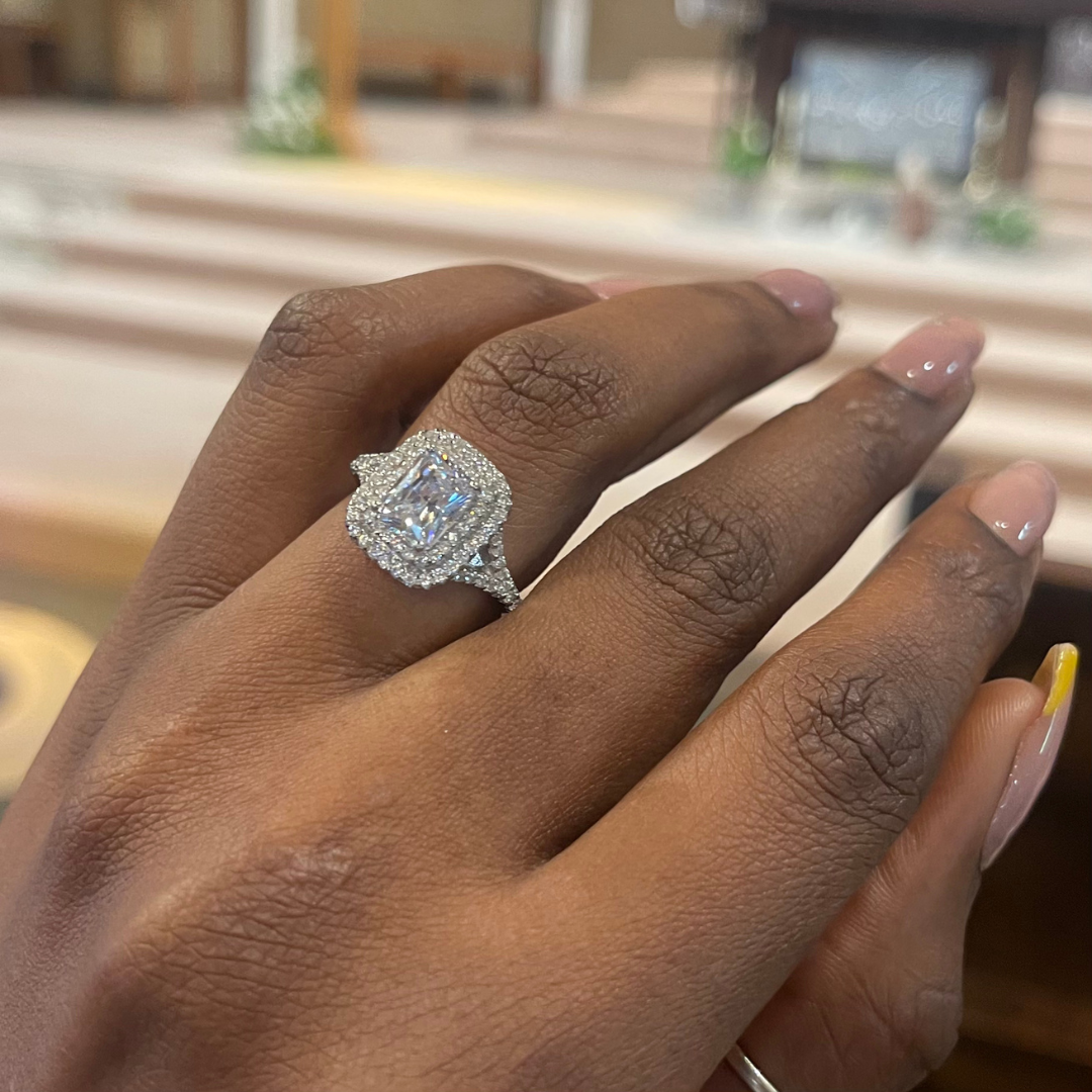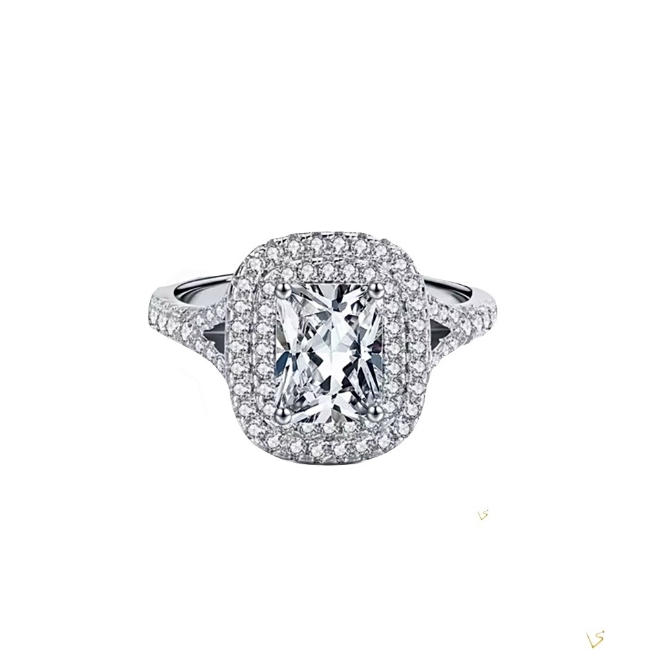 1.5Ct Radiant Cut Double Halo Split Prong Engagement Ring