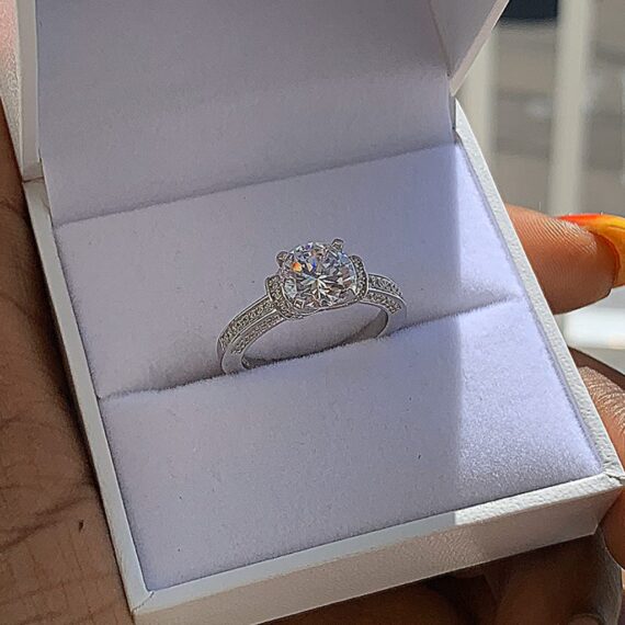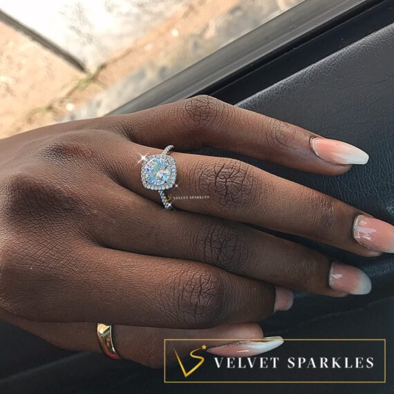 2CT Cushion Cut 3D Halo Flat Top Engagement Ring