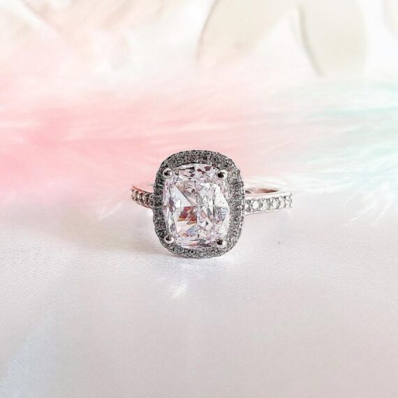 2CT Cushion Cut 3D Halo Flat Top Engagement Ring