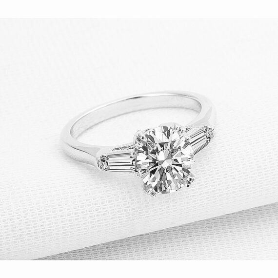 Round and Baguette Cut Pure Gold Engagement Ring